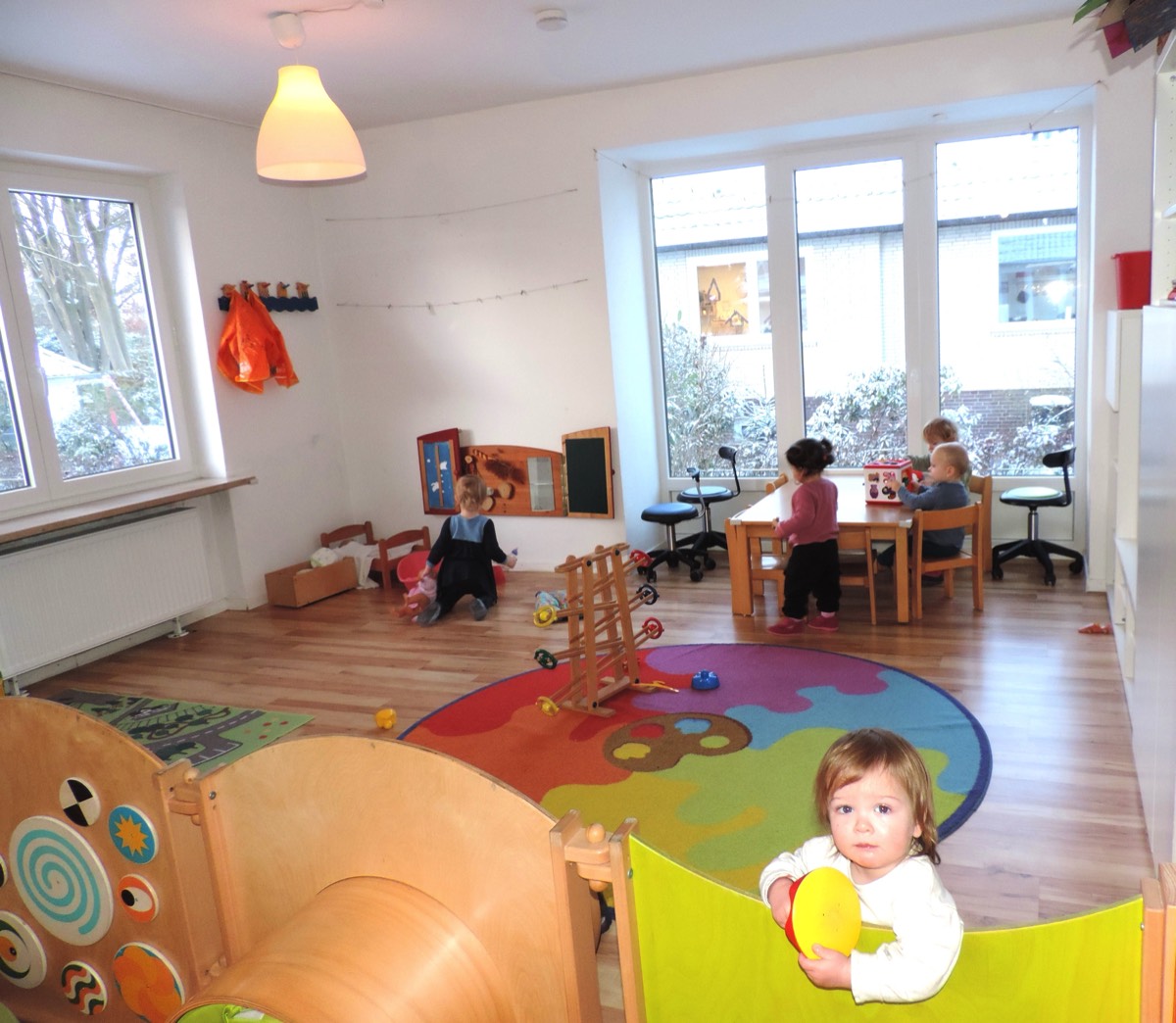 Wir betreuen Kinder im Alter bis zu 3 Jahren im Krippenbereich. Wir bieten Kindern einen behüteten Ort, in dem Sie nach Ihren Fähigkeiten spielen, toben, kuscheln und lernen können.